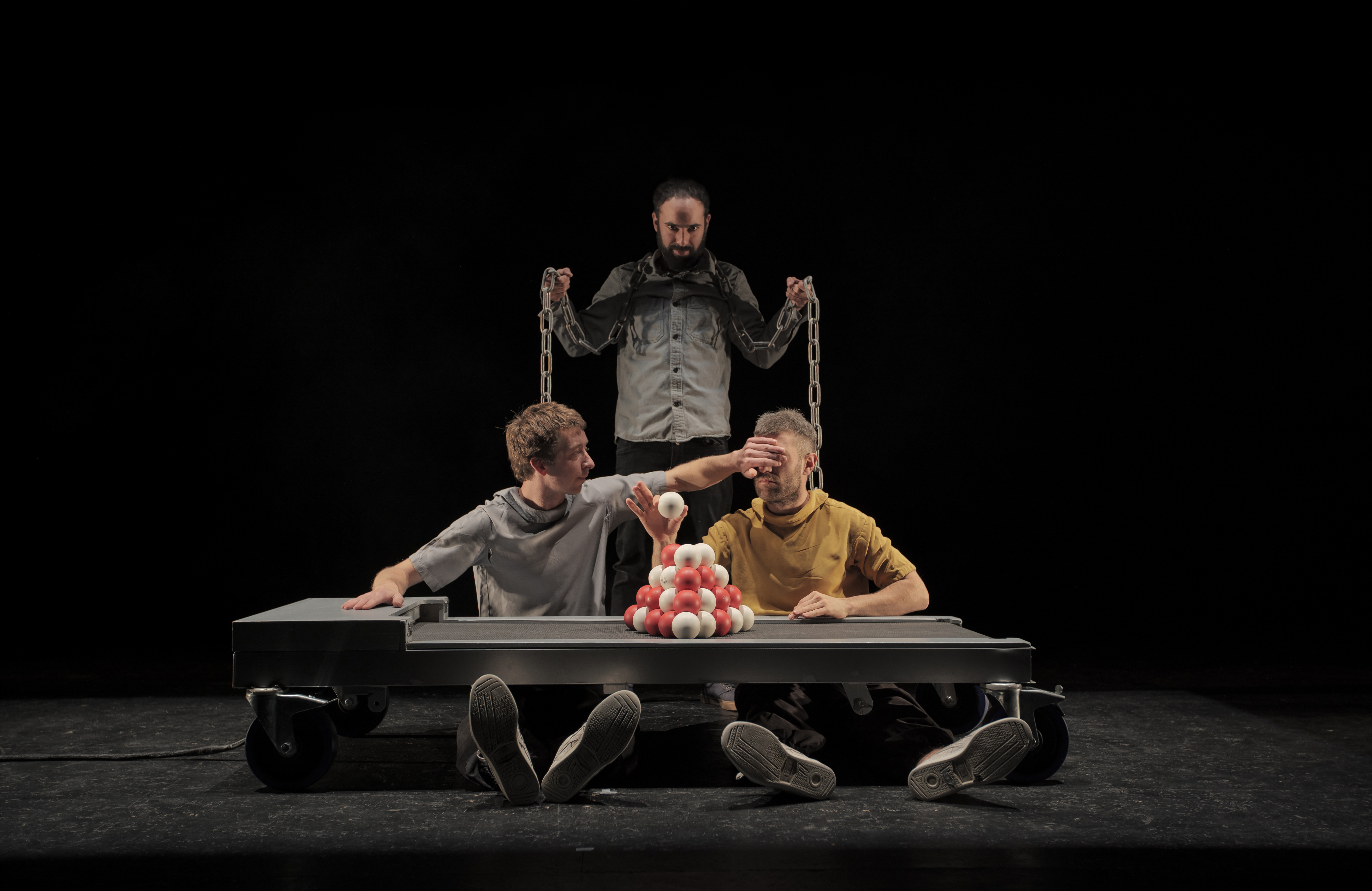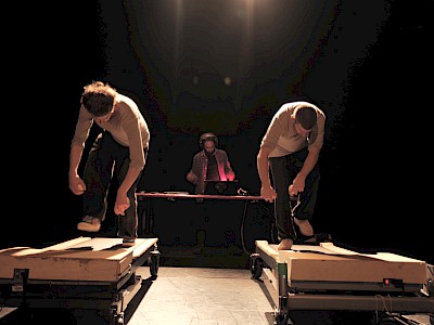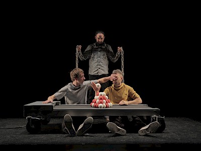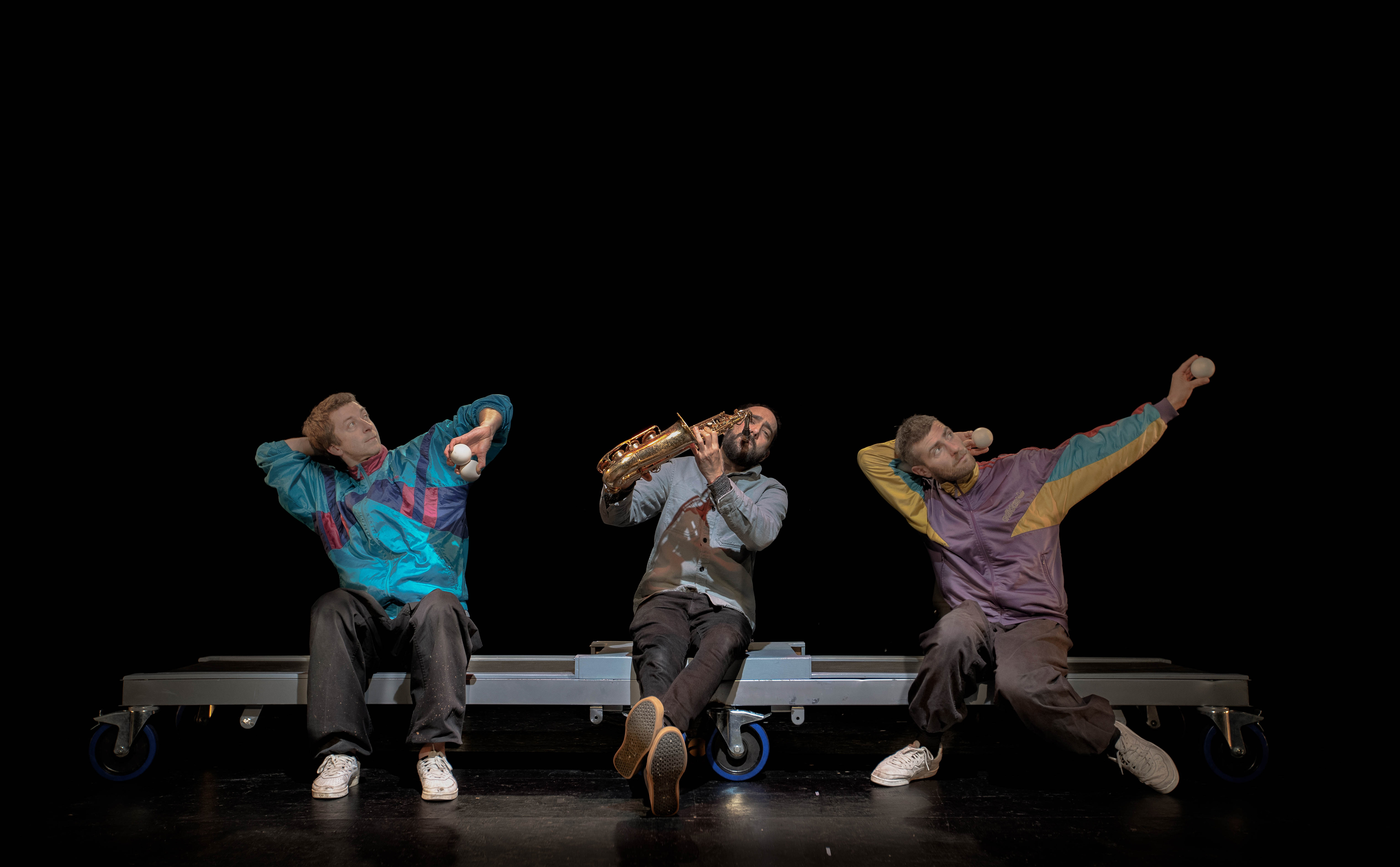 Sie laufen und jonglieren, rennen und fangen, in einer schier endlosen Zirkelbewegung: Die Kompanie Hippana.Maleta seziert in ihrem Stück RUNNERS die Zeit. Zwei Laufbänder halten sie in ständiger Bewegung während Multi-Instrumentalist Moisés Mas García sie durch eine Reihe von Experimenten und Spielen treibt, um das ebenso spannungsgeladene wie grotesk-komische Spiel zwischen den drei Protagonisten in Gang zu setzen und am Laufen zu halten.